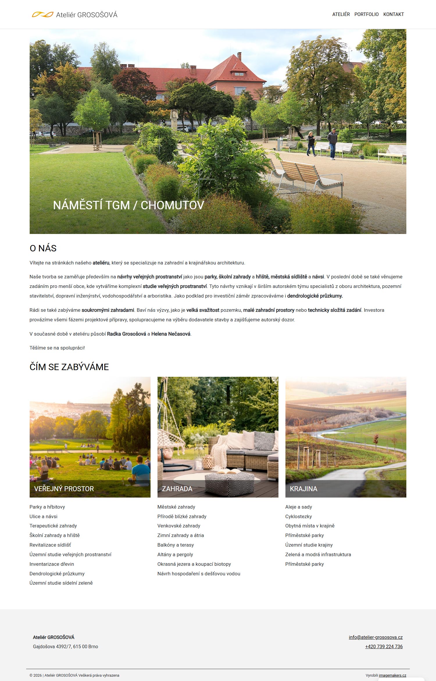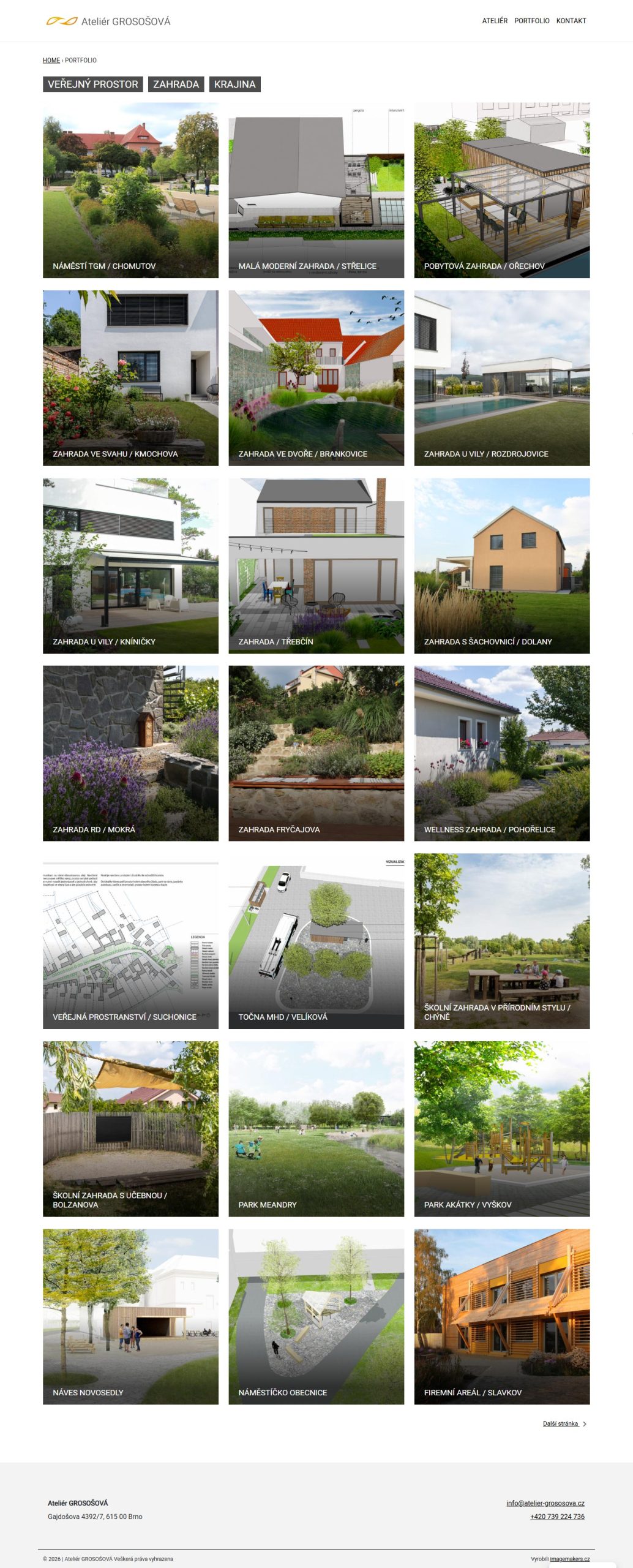 Pro Ateliér Grosošová jsme vytvořili jednoduchý a čistý web od návrhu až po samotné nakódování. Cílem bylo přehledně představit jejich práci, projekty i zaměření ateliéru a dát prostor vizuálům, které jsou pro jejich tvorbu klíčové.